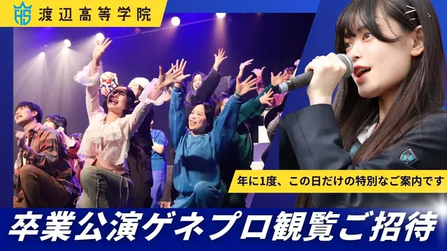 このページをご覧いただいた方に向けて、ささやかな機会をご用意しました。 卒業を控えた先輩たちが、3年間の学びや想いを込めて臨む大切な時間。 普段は関係者のみが見守るその舞台を、 今回に限り、渡辺高等学院にご興味をお持ちの皆さまにもご覧いただけます。 目の前で表現する先輩たちの姿は、少し先のあなた自身の姿かもしれません。 ここでどんなことに出会い、何に心を動かされるのか。 ぜひ会場で、その空気を感じてみてください。